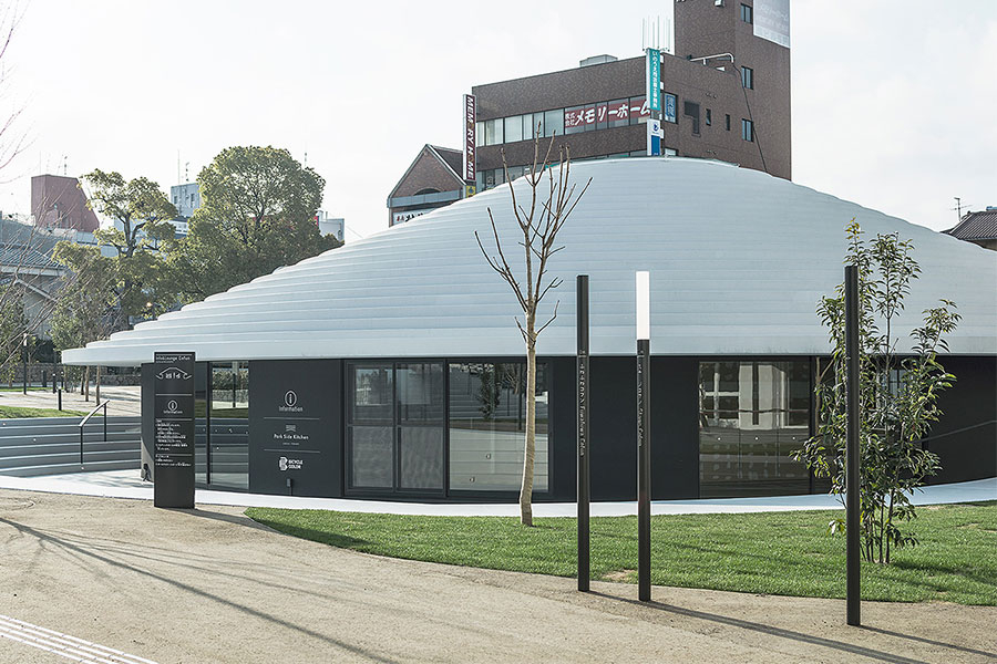 nendo设计的奈良县天理车站广场CoFuFun的标识计划。在建筑物的同心圆上放置地图、游玩方式的说明板,安静的夜间如树木般直立的介绍竿亲切地